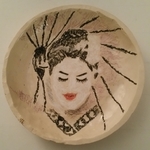 2015Bord met waskrijt getekend en transparant glazuur.